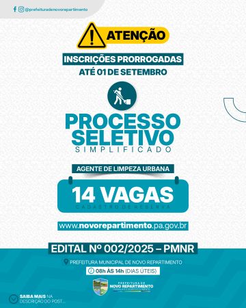 EDITAL DE PROCESSO SELETIVO SIMPLIFICADO PARACADASTRO DE RESERVA DE AGENTE DE LIMPEZAURBANA, PARA ATENDER EVENTUAL NECESSIDADE DASECRETARIA MUNICIPAL DE INFRAESTRUTURA, OBRASE SERVIÇOS URBANOS - SEINFRA.